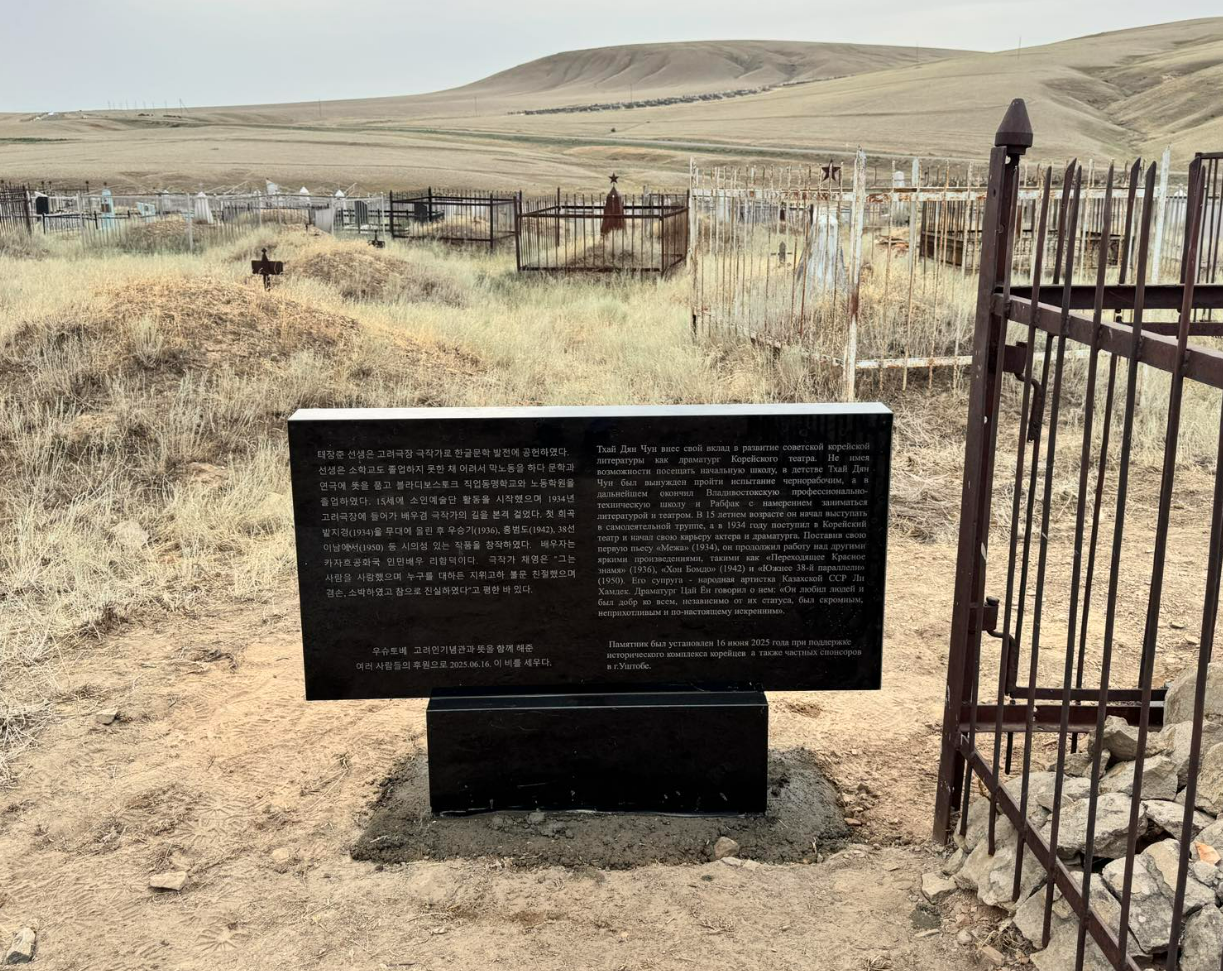 김동우 작가가 카자흐스탄 우슈토베에 방치돼 있던 고려극장 극작가 고(故) 태장춘 선생의 묘소에 비석을 세웠다. 태장춘 선생은 일제 강점기 강제 이주된 후에도 고려극장에서 활발히 활동하며 연극 ‘홍범도’를 쓴 인물이다.