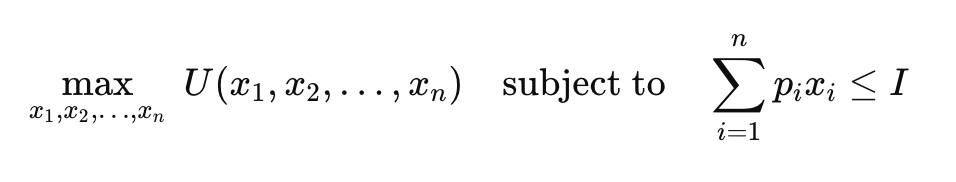 Maximize U(x₁, x₂, …, xₙ) subject to ∑pᵢxᵢ ≤ I