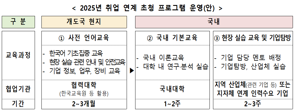 교육부가 개도국 산업인재 양성을 위한 ‘취업 연계 초청 프로그램’을 처음으로 시행했다. 이 프로그램은 개도국 대학생들을 한국에 초청해 산업체 현장실습을 제공하는 교육 ODA의 진화된 모델로 평가된다.