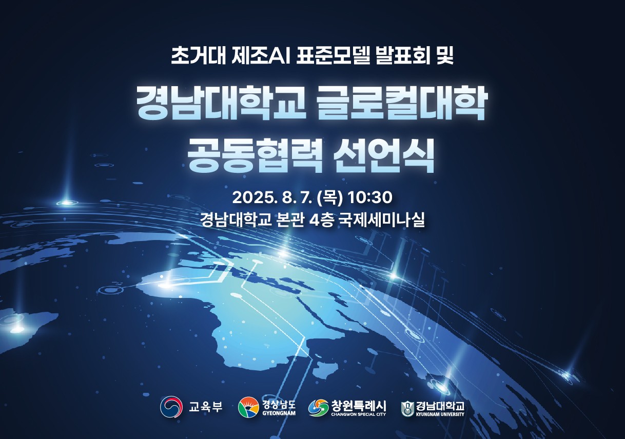 경남대학교가 8월 7일 오전 10시 30분 본관 4층 국제세미나실에서 ‘글로컬대학 공동협력 선언식’을 열었다. 이번 선언식은 인공지능 전환(AX)을 통한 제조 혁신과 AX 융합 인재 양성을 목표로 하는 글로컬 허브 대학으로의 도약을 위한 공동 협력 의지를 천명하기 위해 마련됐다.