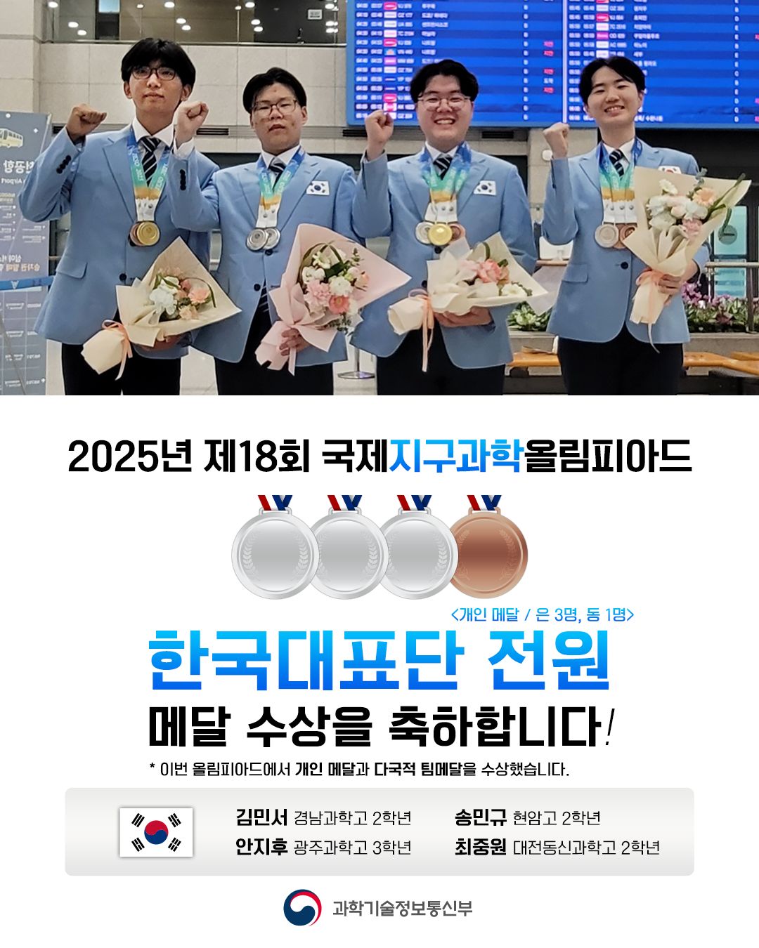 과학기술정보통신부는 “기후 위기 시대에 지구과학 분야의 인재 양성이 무엇보다 중요하다”며 “이번 경험을 발판으로 우리 학생들이 세계적 과학 인재로 성장하길 기대한다”고 밝혔다.