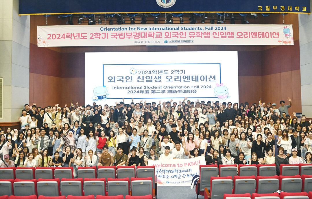 국립부경대학교가 2024학년도 2학기 외국인 신입생을 대상으로 오리엔테이션을 개최했다. 8월 30일 부경대 대학극장에서 열린 이번 행사에는 중국, 일본, 미얀마, 베트남 등 41개국에서 온 510명의 신입생들이 참석했다.