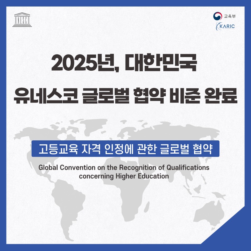 대한민국이 유네스코 차원의 첫 고등교육 협약인 ‘고등교육 자격 인정에 관한 글로벌 협약’을 공식 비준했다. 교육부는 지난 4월 프랑스 파리에 위치한 유네스코 본부에 비준서를 기탁해 한국이 38번째 비준국이 됐다고 밝혔다.