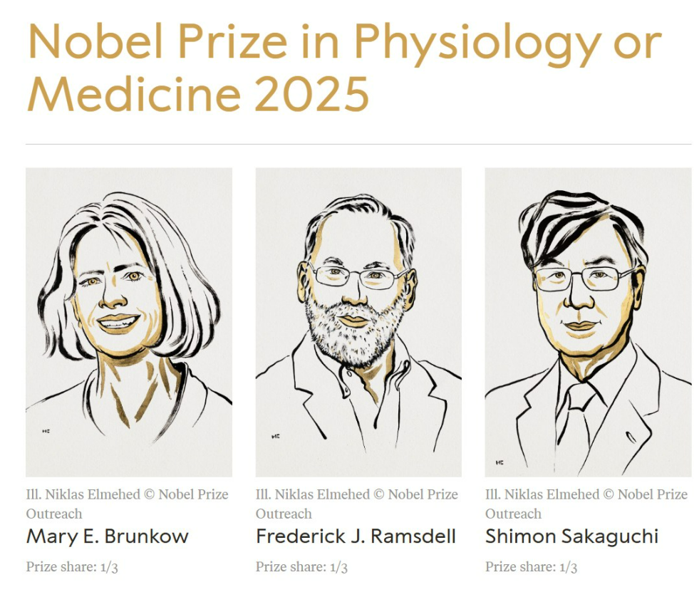 2025년 노벨 생리의학상은 인체 면역체계가 자기 자신을 공격하지 않도록 억제하는 ‘말초 면역 관용(peripheral tolerance)’의 원리를 규명한 공로로 세 명의 연구자에게 돌아갔다.