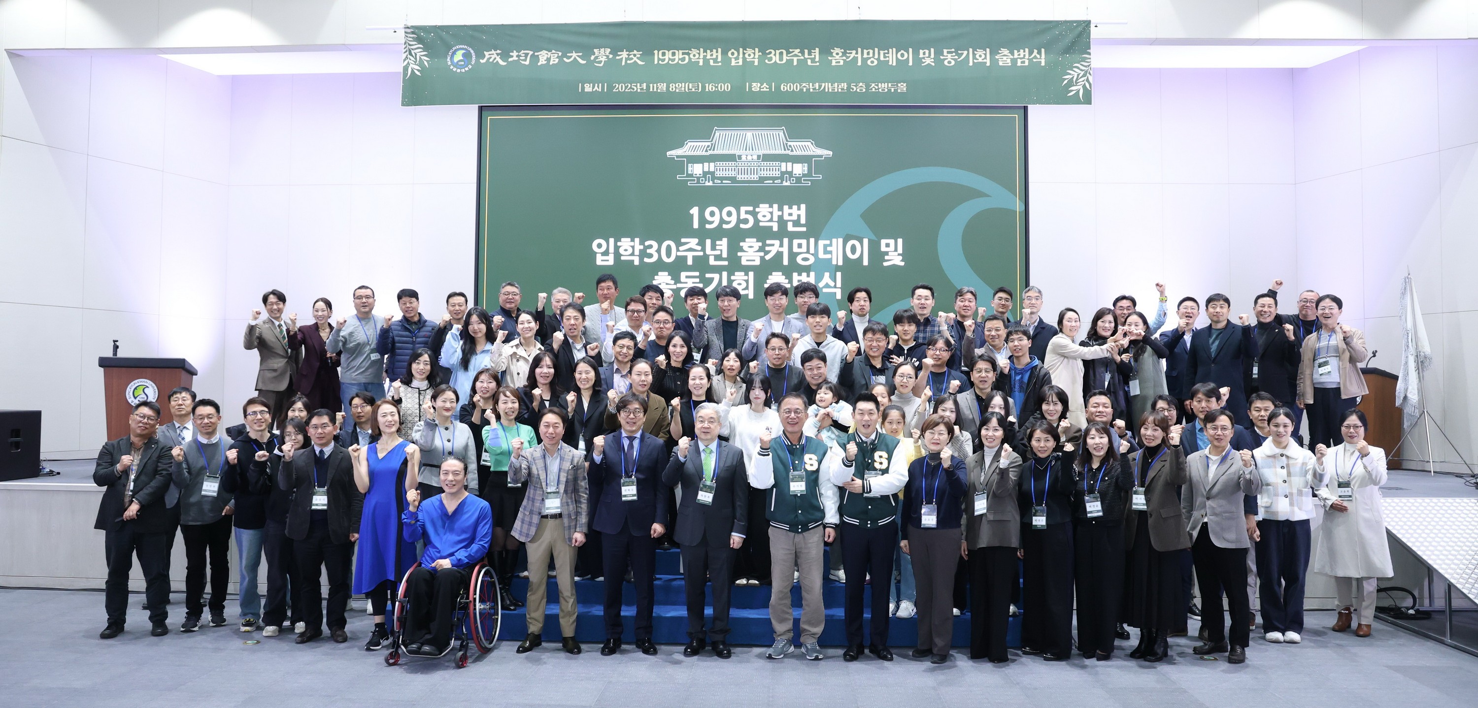 1995학번 입학 30주년 홈커밍데이가 11월 8일 성균관대 인문사회과학캠퍼스 600주년기념관 조병두국제홀에서 열렸다. 행사에는 95학번 100여명을 비롯해 유지범 총장, 차동옥 총동창회 총괄부회장, 선배동문인 93·94학번, 내년 30주년을 맞는 96학번 동문들이 자리해 성황을 이뤘다.