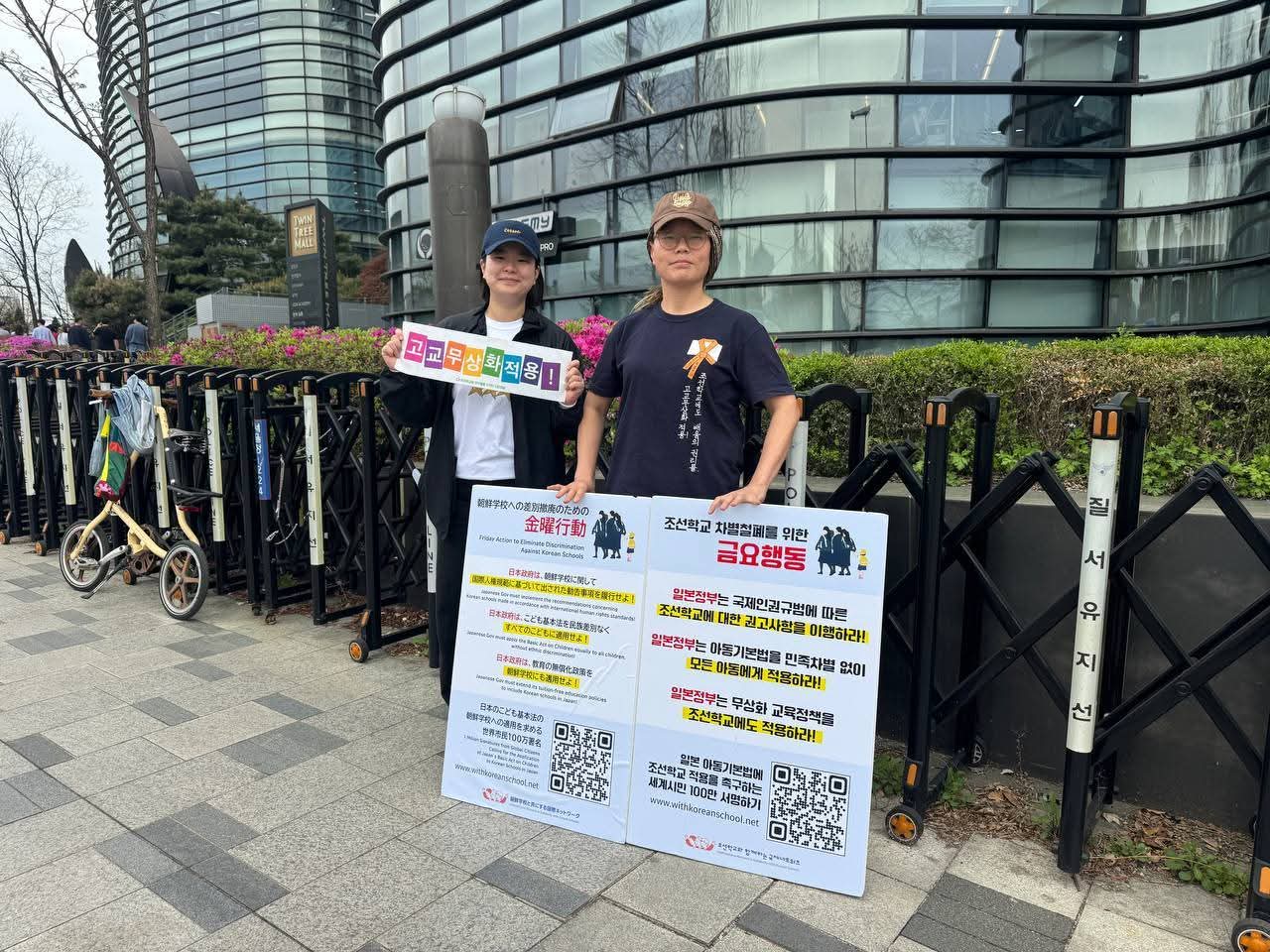 이들은 “조선학교 차별반대”, “유보무상화 실현”, “고교무상화 실현” 등의 구호를 내걸고, “피어라 꽃송이”라는 메시지로 아이들의 배움과 성장을 응원했다.