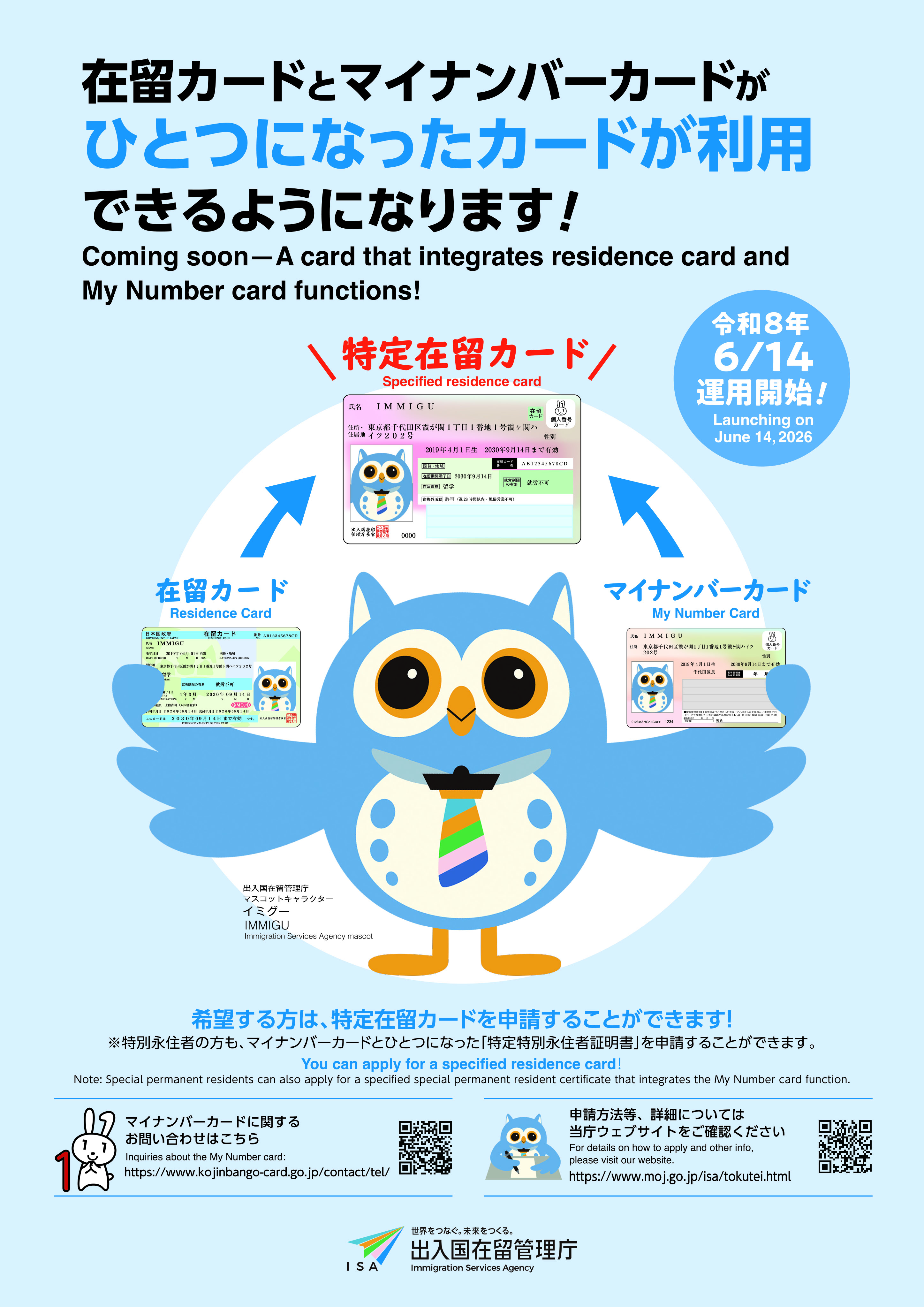 일본 정부가 외국인 대상 재류카드와 마이넘버카드를 하나로 통합한 ‘특정재류카드’를 도입한다. 일본 출입국재류관리청은 2026년 6월 14일부터 해당 카드의 운용을 시작할 계획이다.