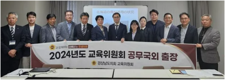 경상남도의회 교육위원회는 9월 25일 일본 홋카이도교육청을 방문해 폐교 활용 우수사례를 벤치마킹하고 경남 지역의 교육 현장에 적용할 수 있는 방안을 모색했다. 경남 지역의 미활용 폐교가 전국에서 세 번째로 많으며, 특히 산간 및 도서·벽지에 위치한 폐교들의 활용 방안이 어려운 상황에서 이번 벤치마킹이 이뤄졌다.
