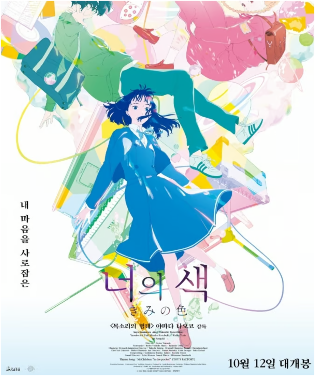 ‘너의 색’은 음악을 통해 세상을 채워 나가는 소녀 토츠코가 고등학교 밴드를 결성하면서 자신의 색을 찾아가는 이야기를 담은 작품으로, ‘목소리의 형태’를 연출한 야마다 나오코 감독의 신작이다.