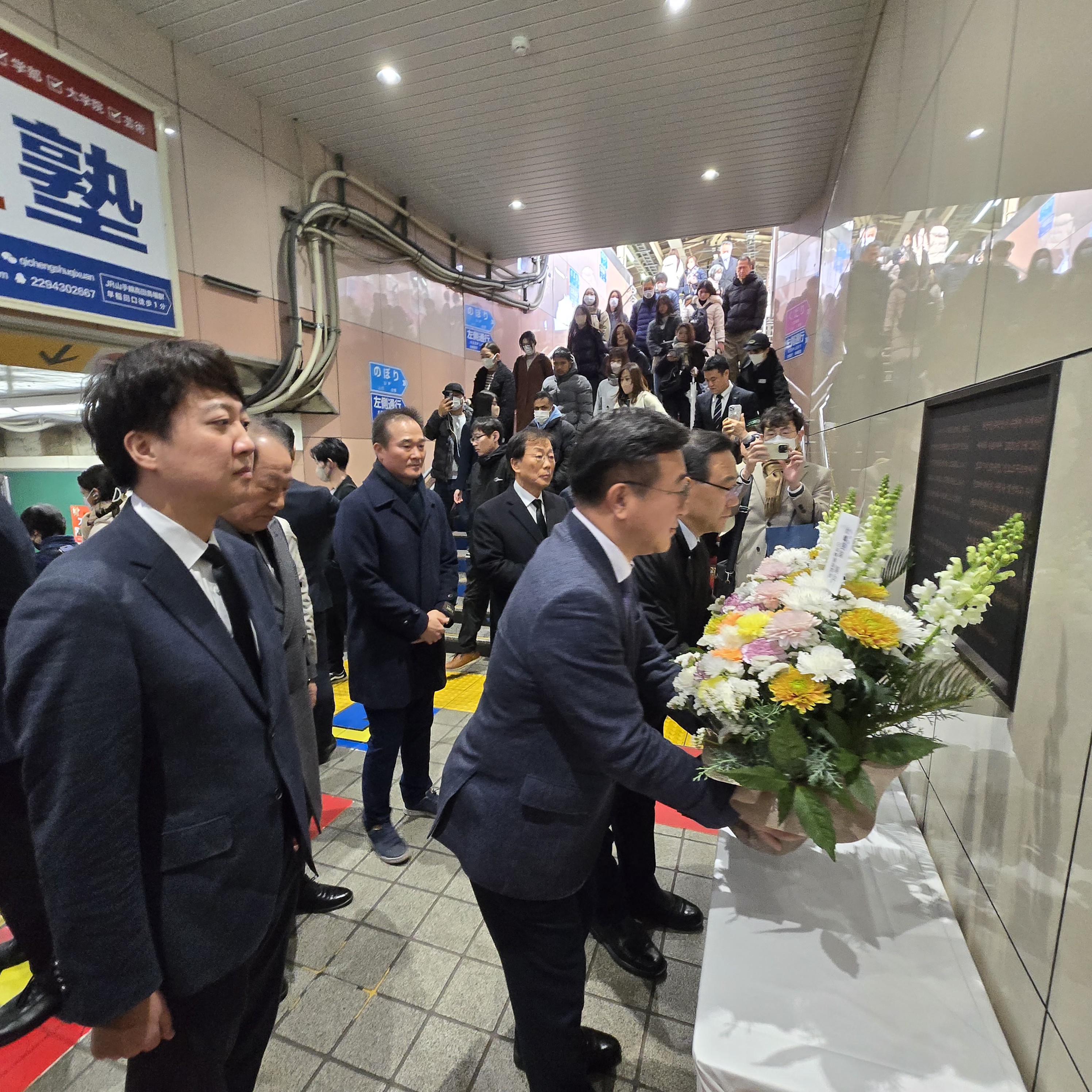 방문단은 오전 10시 30분 JR 신오쿠보역에 도착해 故 이수현 씨 헌화대를 찾아 그의 희생을 기리며 추모했다. 故 이수현 씨는 2001년 일본인 승객을 구하려다 목숨을 잃은 의인으로, 한일 간 우정과 협력의 상징으로 기억되고 있다.