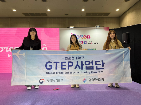 국립순천대학교 지역특화청년무역전문가양성사업단(단장 이재은, 이하 GTEP사업단) 소속 김서연(2학년), 석규린(2학년) 요원이 지난 3월 27일부터 29일까지 일본 오사카 INTEX에서 열린 ‘2025 코리아 엑스포 오사카(Korea Expo Osaka 2025)’에 참가해 실질적인 수출성과를 거뒀다.