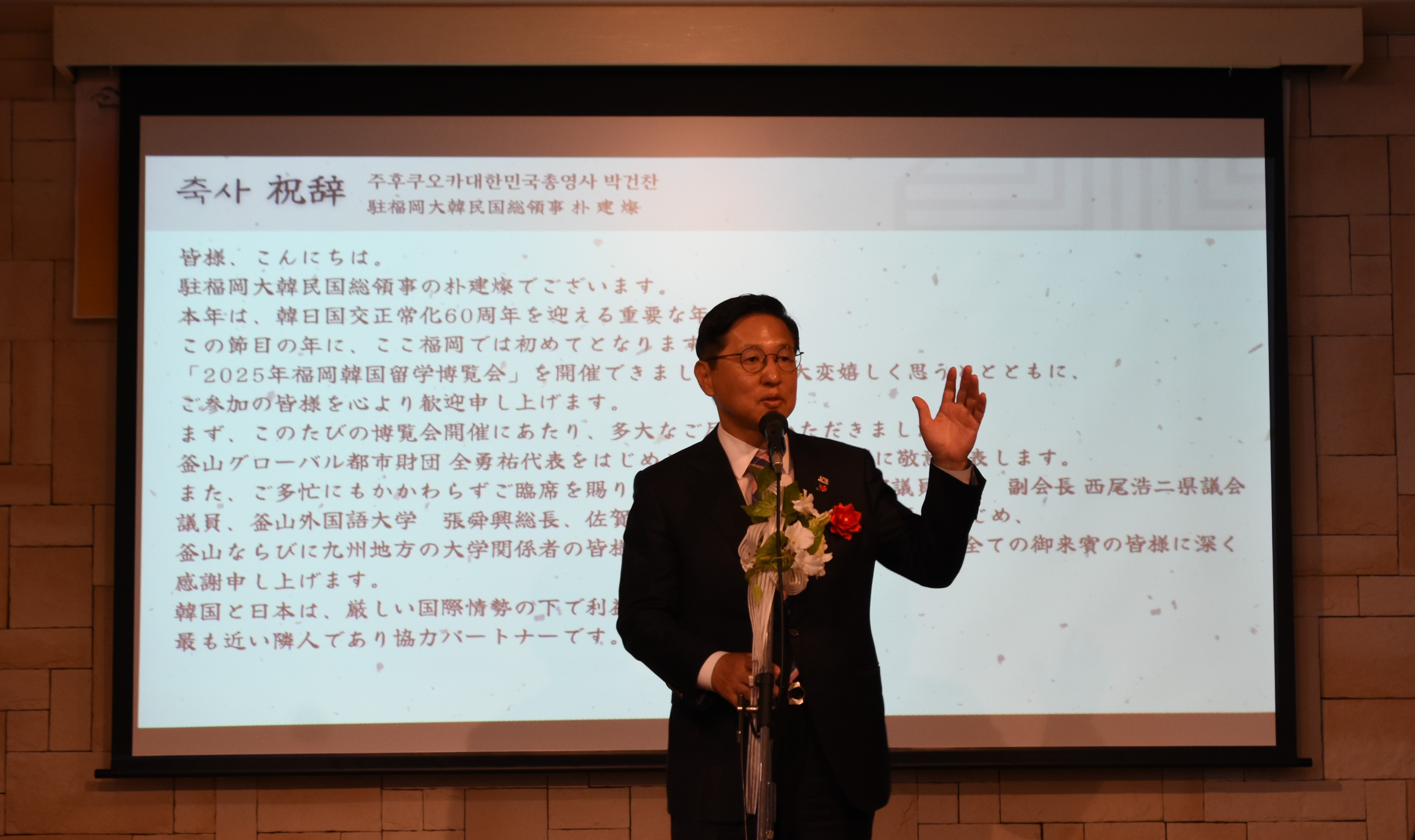 박건찬 주후쿠오카 총영사는 11일 개최된 ‘2025 후쿠오카 한국유학박람회’에 참석해 축사를 통해 한일 양국 국민 간 교류의 중요성을 강조했다.