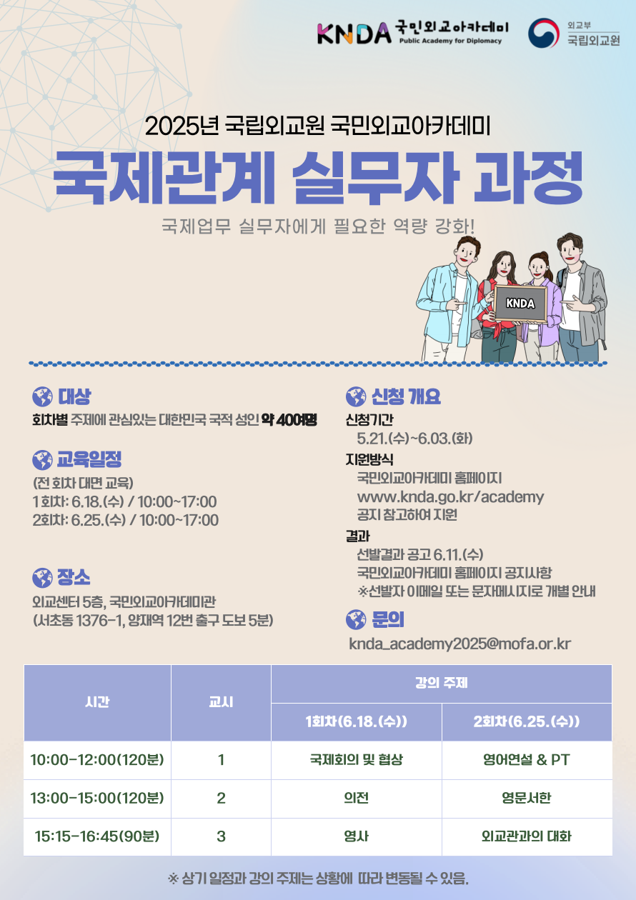 6. 문의처: 국민외교아카데미 운영사무국 이메일 knda_academy2025@mofa.or.kr