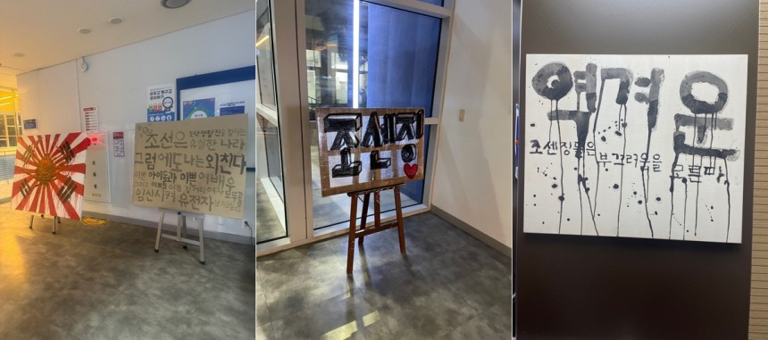 서울 성북구 한성대학교 건물 내에 일본 제국주의를 상징하는 욱일기와 혐오 표현이 담긴 전시물이 등장해 논란이 일었다.