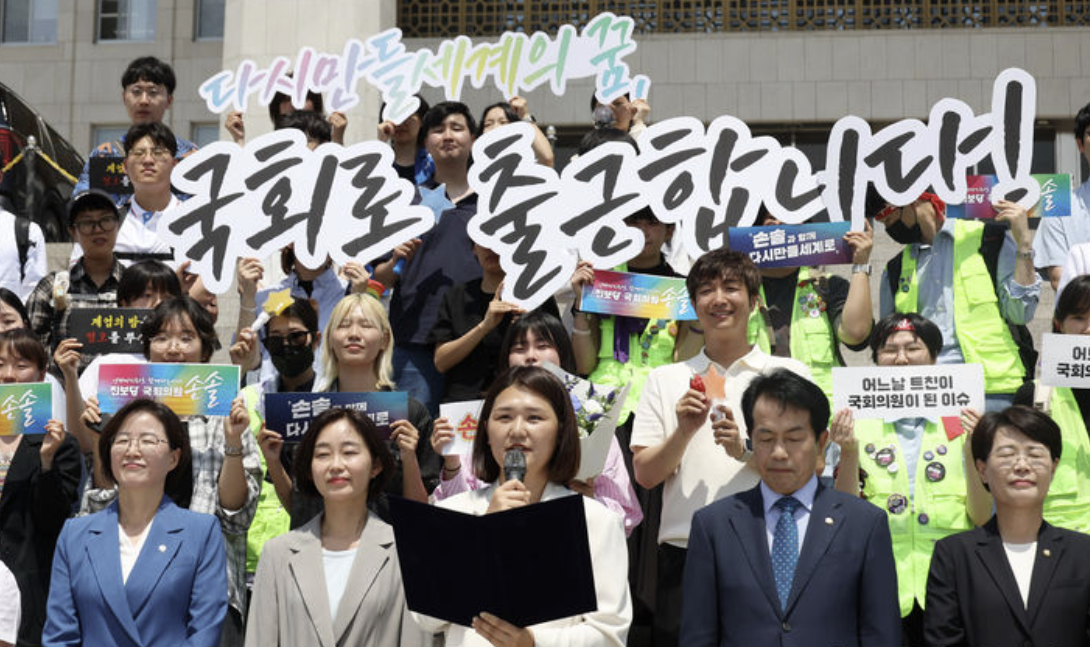1995년생인 손 의원은 전남 영광 출신으로 이화여대 총학생회장을 지냈고, 이후 진보당 수석대변인으로 활동했다. 최근 위성락 국가안보실장과 강유정 대통령실 대변인의 사퇴로 인해 비례대표 국회의원직을 승계했다.